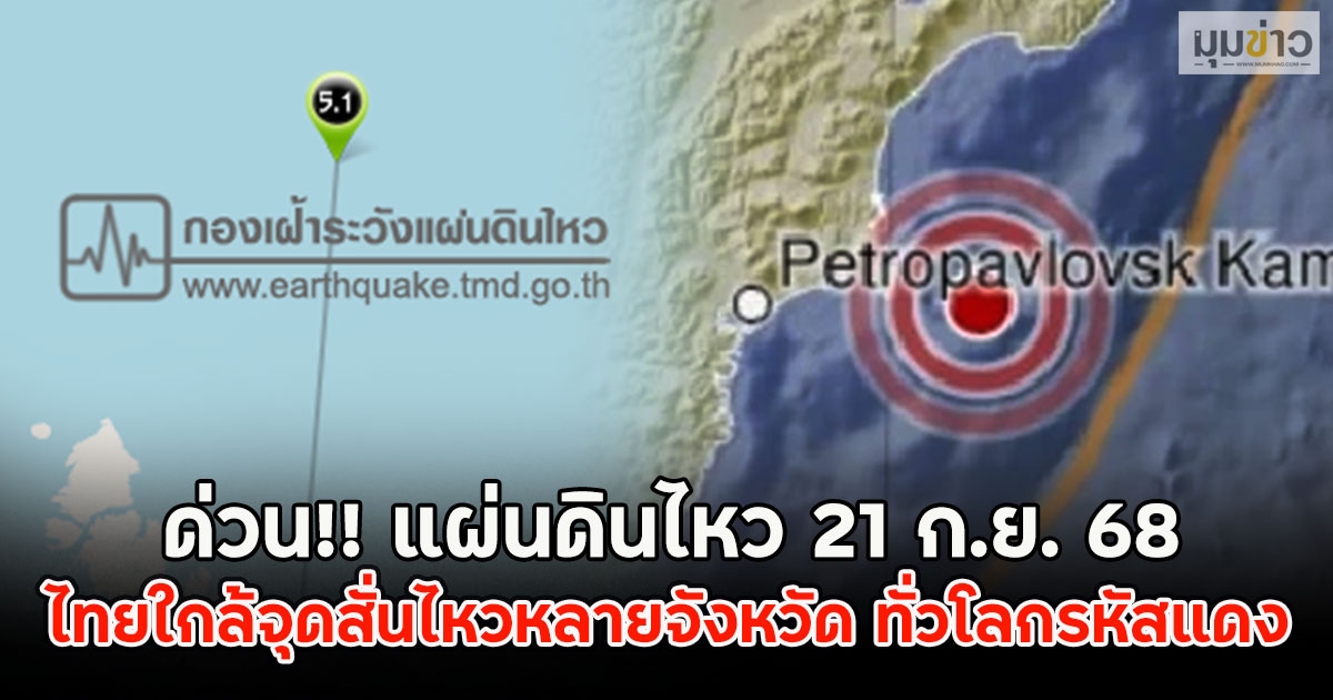 ด่วน!! แผ่นดินไหว 21 ก.ย. 68 ไทยใกล้จุดสั่นไหวหลายจังหวัด ทั่วโลกรหัสแดง
