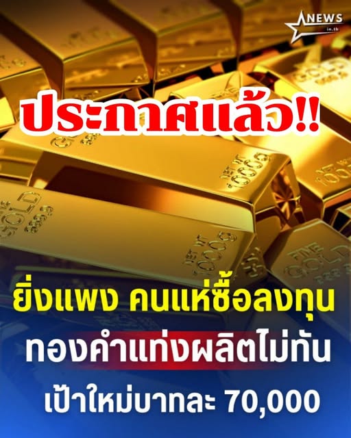 ยิ่งแพง คนแห่ซื้อลงทุน ทองคำแท่งผลิตไม่ทัน เป้าใหม่บาทละ 70,000